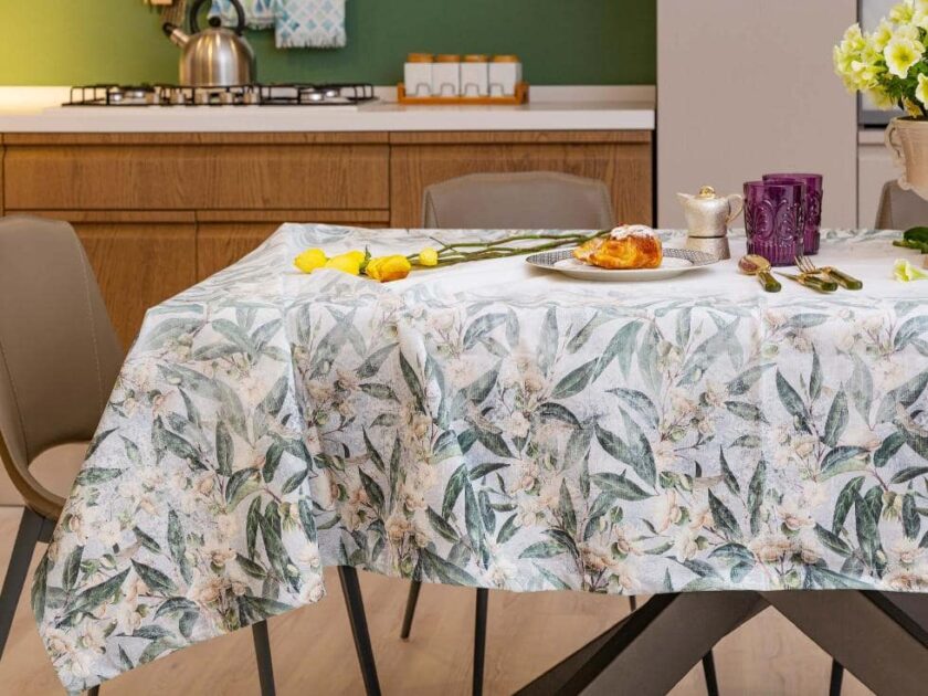 Eleganza e classe per la tua tavola con la tovaglia rettangolare in puro cotone panama stampata con tecnica digitale motivo piazzato.