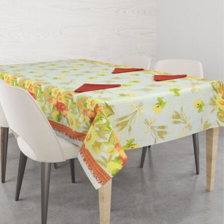 Eleganza e classe per la tua tavola con la tovaglia rettangolare in puro cotone panama stampata con tecnica digitale motivo piazzato.