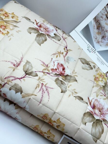Trapuntino disegno floreale in raso di cotone. Realizzato artigianalmente e 100% Made in Italy. Caratteristiche del Trapuntino: Tessuto superiore 100% raso di cotone, tessuto inferiore 100% cotone, imbottitura anallergica e igienica Grammatura 100 gr/mq Trapuntatura a capo 100% Made in Italy Brand: Neรฌth Ideale per le mezze stagioni Lavare a secco Misura matrimoniale: 270 cm x 270 cm Spedizione gratuita Materia prima certificata e trattata con tecnologia antimicrobica che elimina i batteri nocivi Misura: Matrimoniale โ 270 cm x 270 cm