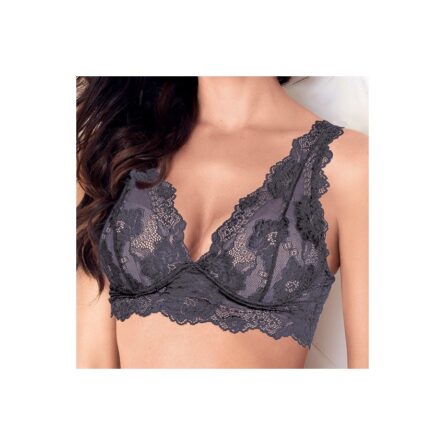 Gem reggiseno bralette in pizzo con coppe push up invisibili in gel color noisette. Il preziosissimo pizzo, la scollatura profonda e le coppe push up color noisette esaltano al massimo la femminilitร , creando un effetto vedo non vedo elegante e sensuale. Composizione Esterna 88% poliammide, 12% elastan. Composizione Interna 65% poliestere, 35% cotone.